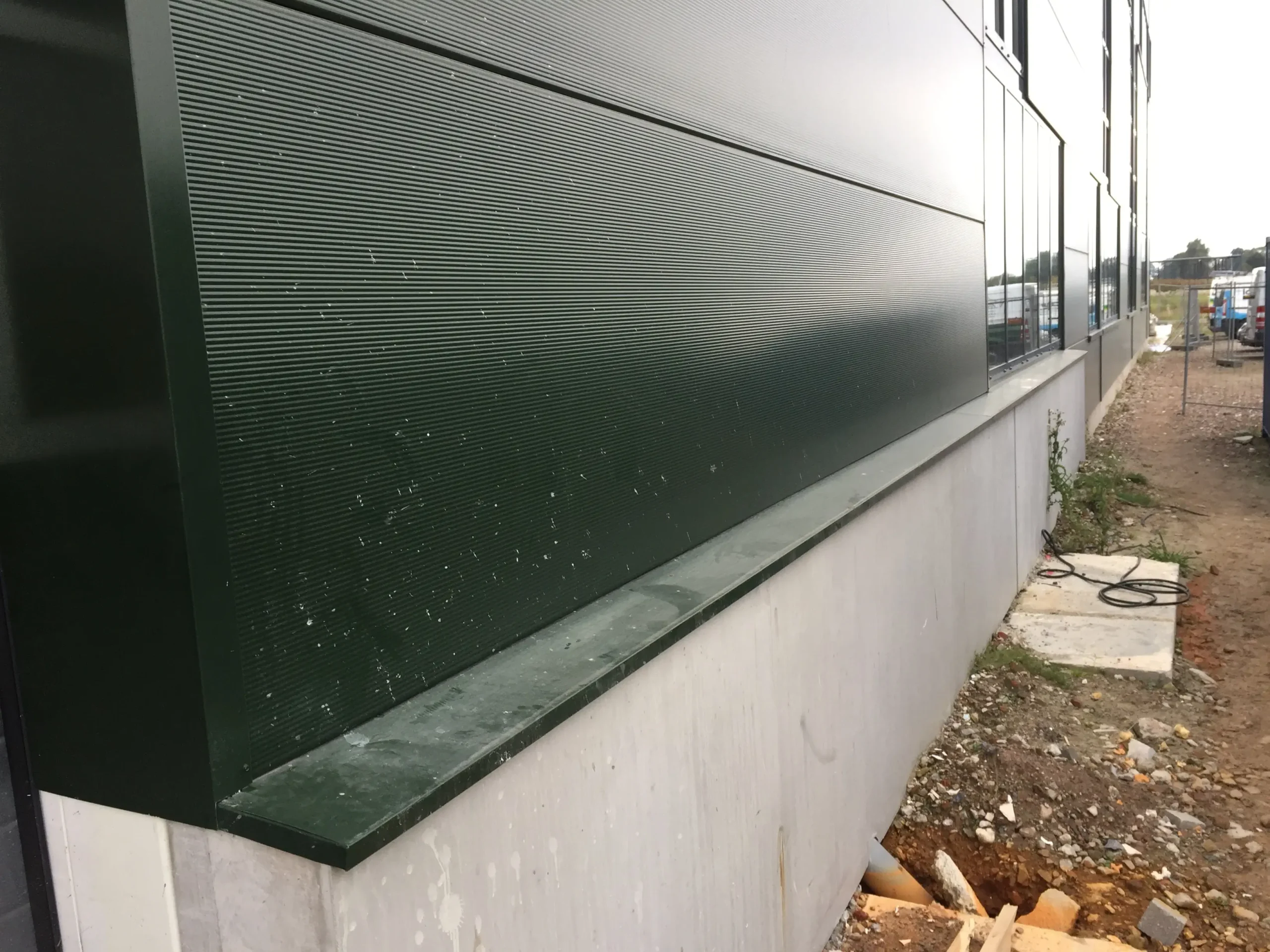 Concrete splatter or cement residue on sandwich panels and cladding looks unsightly and can also lead to further damage. It is important to have these residues and splatters removed promptly and professionally. Van Heemskerk can often clean or restore your facade professionally.