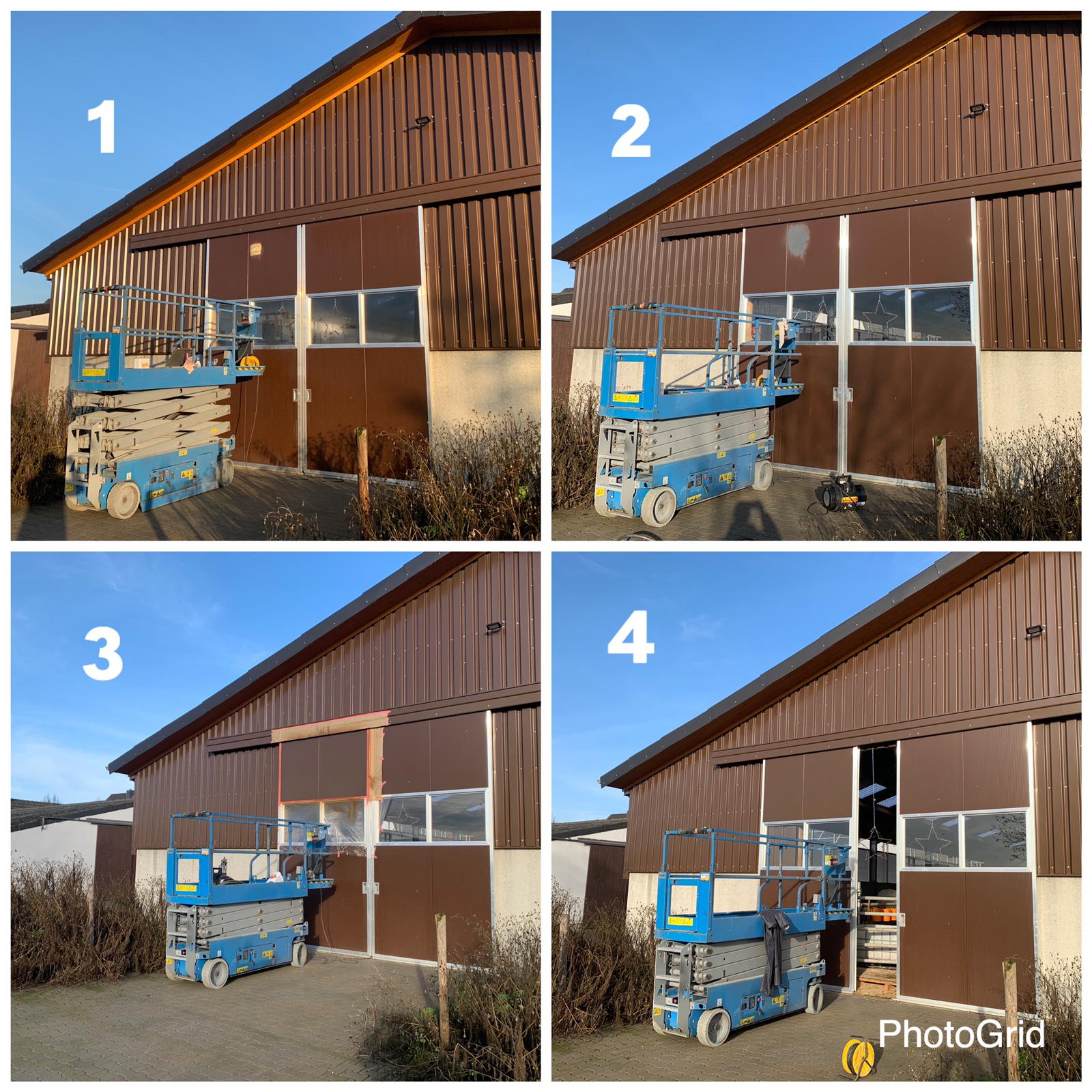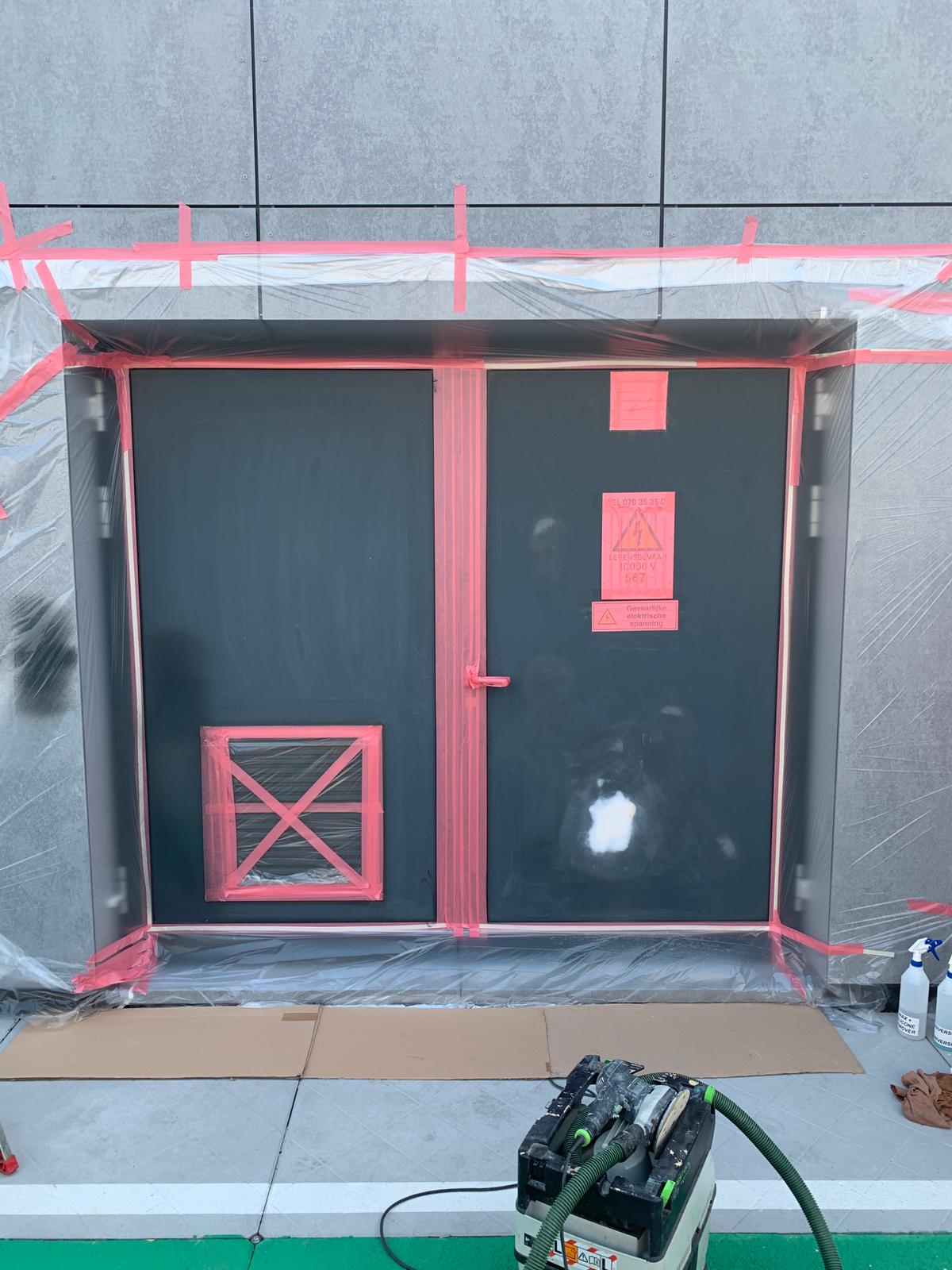 Van Heemskerk specializes in repairing damage to cladding and sandwich panels. We also excel in repairing damage to aluminum or plastic frames and commercial doors. Additionally, we respray discolored frames and doors.