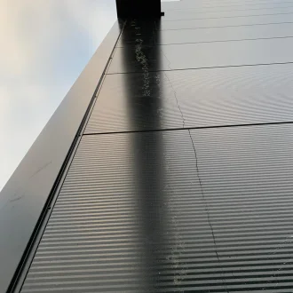 We expertly and professionally remove PUR residues from sandwich panels and cladding from all well-known global manufacturers and suppliers, such as Kingspan, Joris Ide, Falk, Arcelor, etc. Our method allows us to restore your facade or roof panel almost invisibly on-site, without needing to replace the panel.