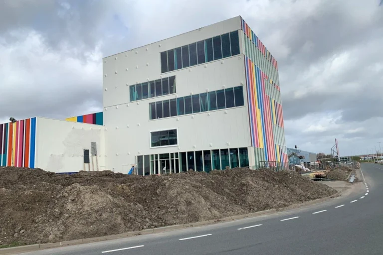 For our client Kondor Wessels Projecten B.V. from Rijssen, we repainted various facade sections at FloriWorld in Aalsmeer in a beautiful dark gray color, which creates a lovely contrast with the bright colors of their branding. We are also happy to collaborate with you on special projects!